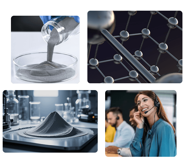 Grazie alla tecnologia avanzata di fusione sottovuoto (VIM) e atomizzazione a gas sottovuoto (VIGA), controlliamo la purezza e le impurità delle materie prime fin dall'origine, garantiamo l'elevata purezza e la consistenza della polvere sferica e i prodotti in polvere continuano a funzionare bene anche in condizioni difficili. Oltre ai prodotti standard, Zm3dpowder fornisce agli utenti anche soluzioni personalizzate per i materiali in polvere. Il team tecnico è profondamente coinvolto nello sviluppo delle applicazioni dei clienti, fornendo un supporto tecnico completo, aiutando i clienti a ottimizzare la progettazione dei processi, risolvendo le sfide incontrate nelle applicazioni pratiche e aiutando gli utenti ad applicare con successo in diversi settori.